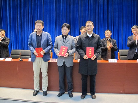 杨秀清教授对论文评奖情况作出报告。经过评委仔细斟酌、认真评议,并根据论文的质量评选出获奖论文6篇,其中易军老师和张钦昱老师获二等奖,靳文静老师、李建伟老师、刘少军老师和翟继光老师获三等奖。随后院学术委员会委员为获奖者颁发奖状,并与获奖老师合影留念。