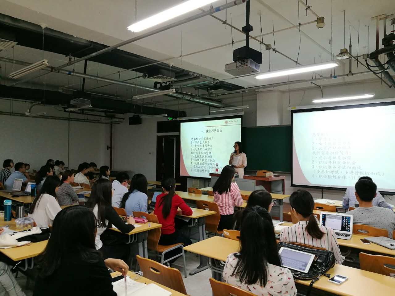 此次动员大会蒋老师主要对2017年的就业形势进行了分析,然后就毕业生就业流程、毕业中的重要环节、就业过程中需要的材料以及其他与就业有关的重要事项进行了展开与说明。