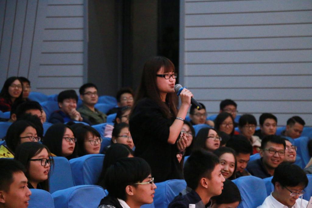 19时整,活动正式开始。李思思首先为大家分享了自己的新书——《有点意思》,这本书主要是她人生经历、选择与感悟的记录,在分享中,她向在场同学出了三个问题:一、有多少人自认为可以勇敢的作出选择?有多少人会为自己的选择而后悔?又有哪个女孩会为早餐而纠结?同学们踊跃的与嘉宾进行了互动。