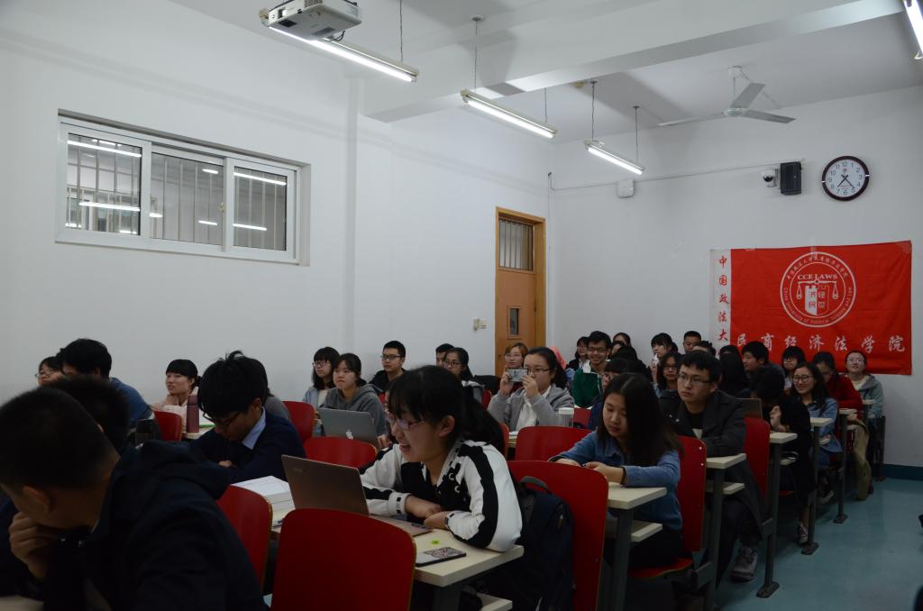 活动于下午七点开始,但因为对老师的喜爱和对这本书的兴趣,在下午六点半时教室里便没有了空位,有不少同学是搬着板凳坐在过道中。七点活动准时开始,翟远见老师没有站在讲台上与同学们交流,而是选择了坐在同学中间,瞬间拉近了与同学的距离。在活动一开始,老师首先说明了他推荐《古代法》作为本次读书沙龙书目的理由,第一是它很经典,里面有很多流传很广的法思想的名言;第二,它的篇幅不太长,对于刚刚上大学的法学员工来说,读这些小部头的书,恰恰比读太大部头的书,更使人受益;第三,它是历史与制度的结合。老师认为法学院的员工要看的是从这些制度史里面了解现在,并且大致判断一个整体性制度的未来走向,这才是最最重要的。之后老师介绍了《古代法》可能带给我们的好处,借这本书的写法和目的告诉我们,对法学的员工来说,应该怎么写东西,关注那些东西,怎么看待这些历史性的研究成果。