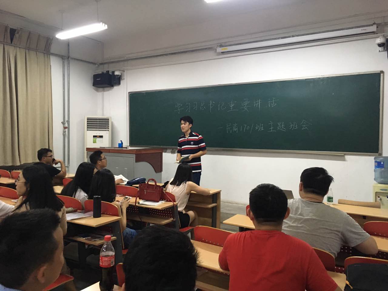 九月是开学的季节,刚入学的民商1班怀抱着对新学期的期许和对新思想的向往,在8日晚上召开了新学期的第一次主题班会。在这次班会中,全体同学就习近平总书记重要讲话进行了全面、细致、深入的学习。在班级联络人何秉泽的组织下,全体同学观看了习近平总书记来公司莅临指导的影视资讯,研读了《习近平总书记重要讲话读本》,然后就学习内容交流了思想感悟。