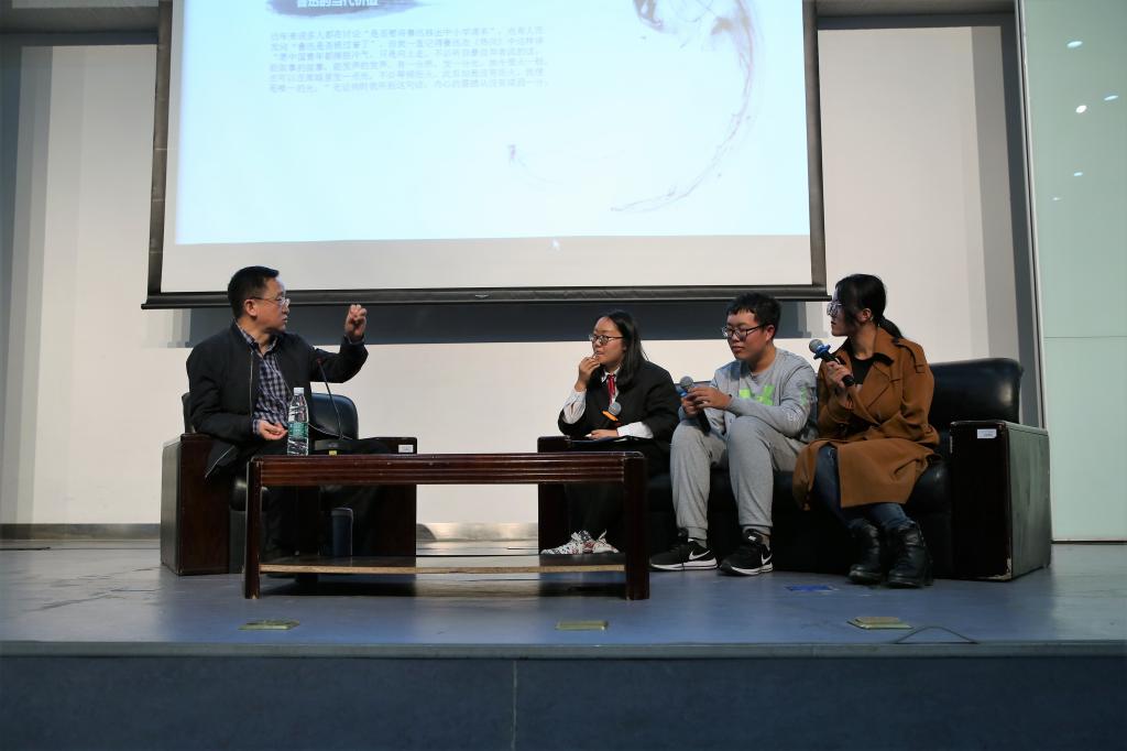 随后的座谈环节,阎老师分别与三位同学分享了鲁迅对当代老员工的启发,语文教材中的鲁迅等话题。阎老师也对当代老员工作出寄语:老员工最好读懂一两个人,不一定要是鲁迅,可以是文学,哲学或其他某一领域的大家。