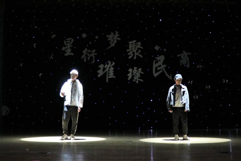 21点,yl8cc永利2017级本科生迎新晚会接近尾声,舞台上呈现出的每个节目都凝聚了开学以来两个月民商人的汗水与心血,虽然辛苦劳累,但是每一位参与其中的民商学子都将更加明白民商二字的意义,也会在之后的法大生活中更加珍惜“民商民商,天下无双,民商民商,我为你狂”的时光。