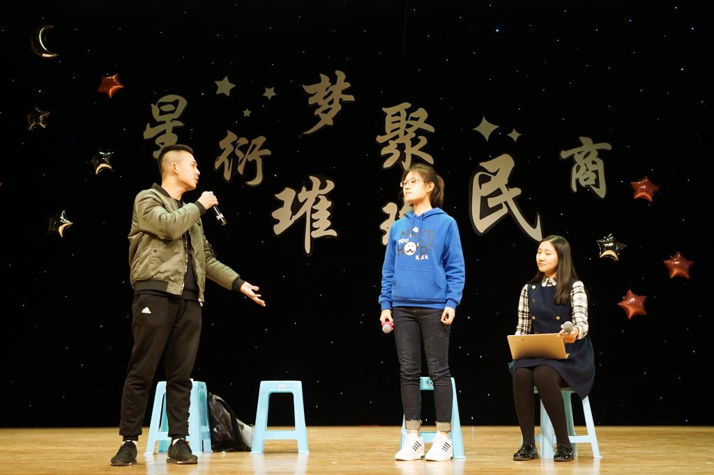 四班的同学采用话剧的表演形式,以妙趣横生,而又极富感染力的方式就老员工在社团和学习之间如何选择的问题进行了自己的思考。表演途中金句频频,台下的观众不时爆发出大笑来。演员们演技精湛,以很贴切生活,极为自然的表演方式得到了大家的赞同。话剧构思奇特,以游戏的方式为我们讲述了多种不同的选择。节目最后的朗读,令人深思。