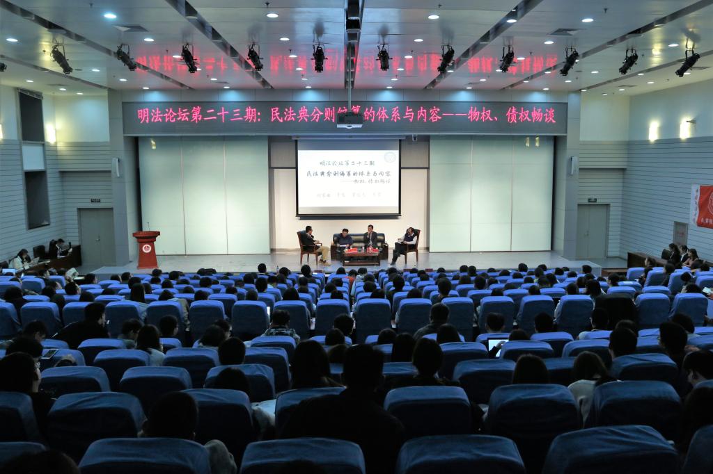 台上老师的精彩发言和谦逊的交流态度赢得在场每一个人由衷敬佩,台下不时传来阵阵经久不息的掌声。最后是提问环节,四位同学就居住权、土地改革三权分立、民和商的关系等问题与老师展开沟通交流,迸发闪耀的思想火花,在座的其他同学心领神会,受益颇深。