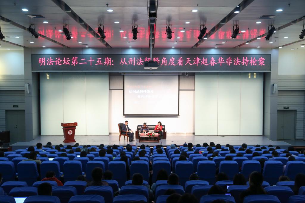 2017年11月30日,yl8cc永利“明法论坛”第二十五期——“从刑法解释角度看天津赵春华非法持枪案”在公司昌平校区逸夫楼刘皇发报告厅举行。本次活动有幸邀请到了清华大学法学院黎宏教授、劳东燕教授和公司刑事司法学院曾文科老师作为嘉宾,他们以热点案件为切入点,带领同学们一窥刑法解释与犯罪论体系。