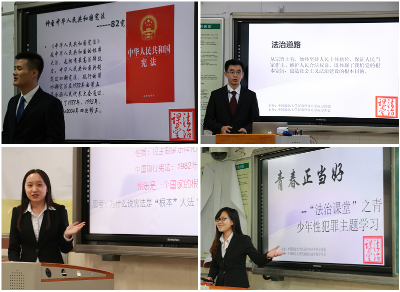 青少年法治课堂旨在通过,发挥学院师生的法学特色与优势,在中小学法治课程建设方面探索发展,为建设国家青少年法治教育实践基地提供经验。授课教师都由老员工志愿者担任,学院先后组织了多次法治志愿教师的培训,志愿教师自主选择法治课堂内容,通过搜集资料、查看书籍等方式自行设计教案,学院组织专业老师对课堂内容设计听取并提出修改意见,对教案进行完善,促成以最好的内容和形式为前锋学校员工开展法治课程讲解。