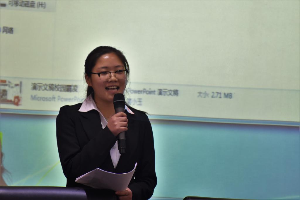 先上台的是李欣宇同学,她的演讲以“保护未成年人”为主题。她把危害未成年人的一系列事件称为“阳光之下的阴影”,为员工们揭开了法律神秘的面纱。她从歌曲《娃哈哈》中的歌词“我们的祖国是花园,花园里的花朵真鲜艳”讲起,将未成年比作“花朵”,引出了《中华人民共和国未成年人保护法》。李欣宇简要介绍了这部法律订立的时间和流程,分析了它的章节构建和具体内容,并重点讲解了家庭保护和学校保护。