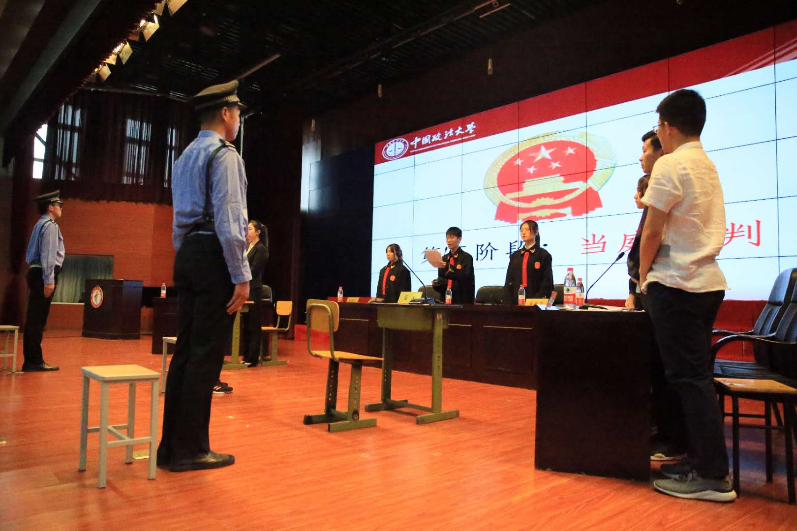伴随着热烈的掌声,参与模拟法庭表演的志愿者进行了自我介绍。书记员海博洋同学简要介绍了案情。接着,在庄重肃穆的气氛中,模拟法庭表演开始了。