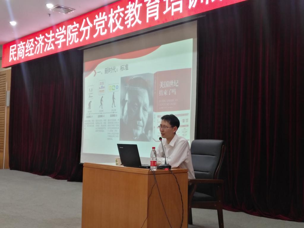 黄东对习近平总书记北大考察讲话中向青年提出的要求进行深入浅出的阐释,结合时事热点讲解了爱国、励志、求真和力行的时代意义及青年一代应当肩负的历史使命。他将讲话精神概括为,青年人要爱国,忠于祖国,忠于人民;要励志,立鸿鹄志,做奋斗者;要求真,求真学问,练真本领;要力行,知行合一,做实干家。讲解中结合了时代变迁、个人发展经历及高校人才培养模式,强调青年人既是追梦人,也是圆梦人,为同学们树立了正确的青年观。