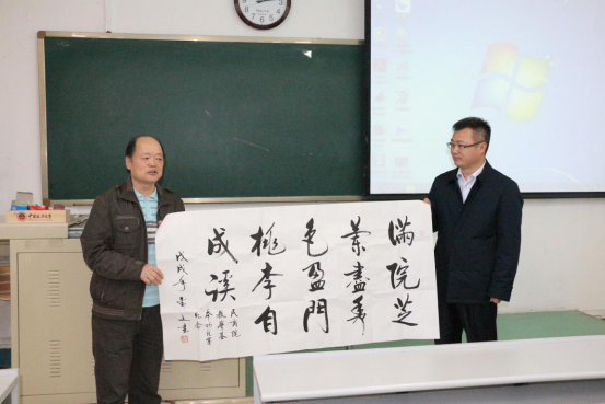 李玺文代表学校工会对学院举办本次大赛的初衷给予了充分肯定,并感谢公司党委对青年教师基本功大赛的支持,向大赛赠字一幅,预祝大赛圆满成功。