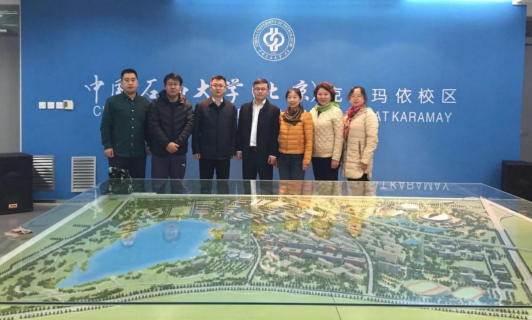 2018年10月18日,公司党委书记王洪松、国内合作处处长刘建一行,赴中国石油大学(北京)克拉玛依校区看望刘丹、张东两位援疆教师。